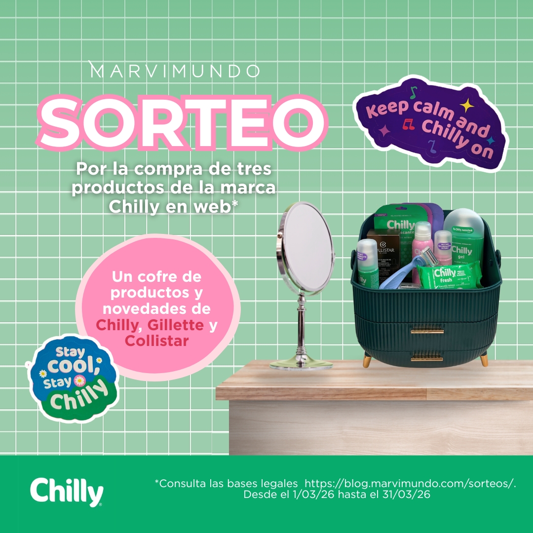 Se sorteará un cofre de productos Chilly. Para participar en el sorteo, el consumidor deberá comprar 3 productos de Chilly. Sólo podrán participar en la promoción los usuarios del Club de clientes Marvimundo.