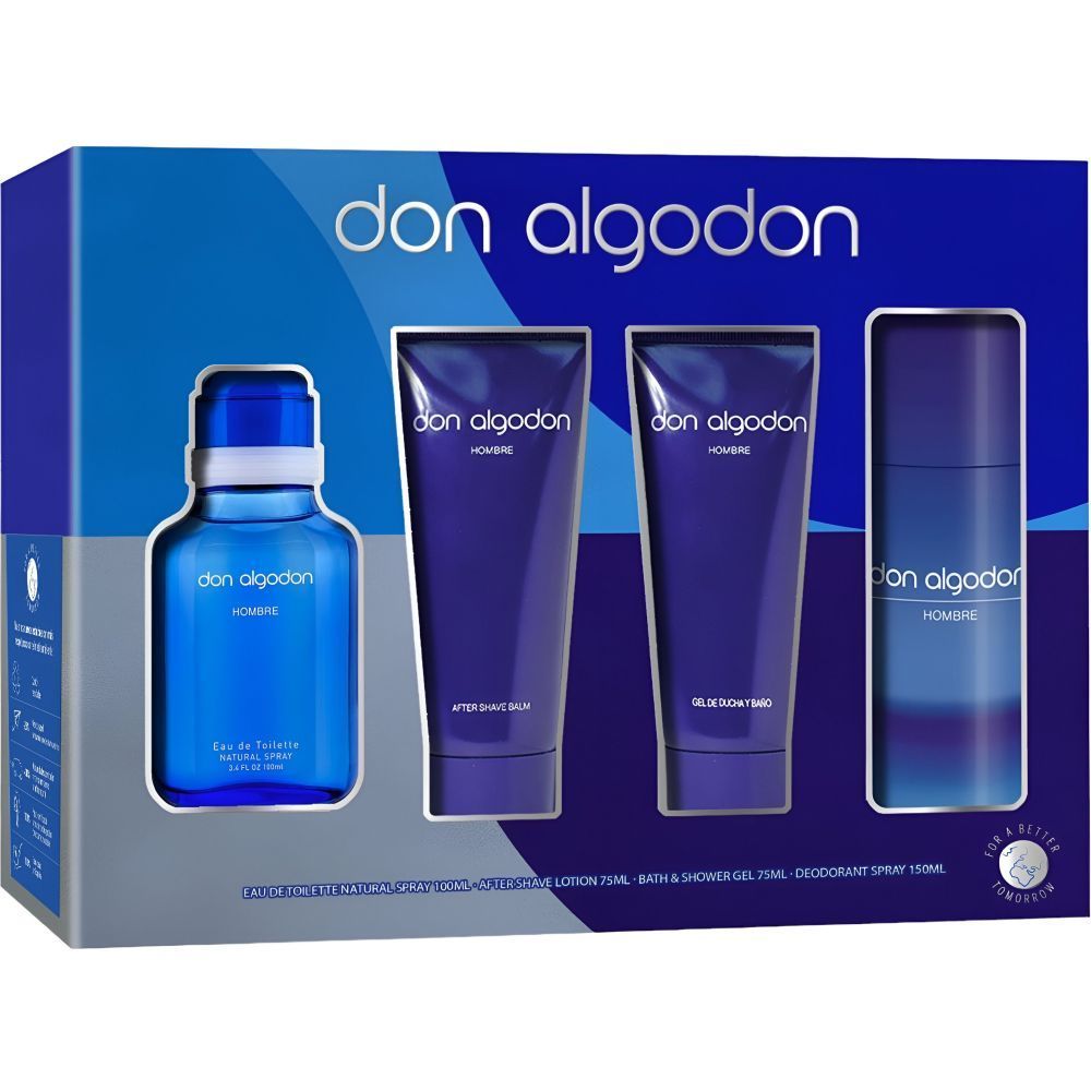 Estuche Don Algodón Hombre | ![]() | Fragancias clásicas y atemporales. Set de baño completo con eau de toilette, after shave, body Lotion y Desodorante. | |
